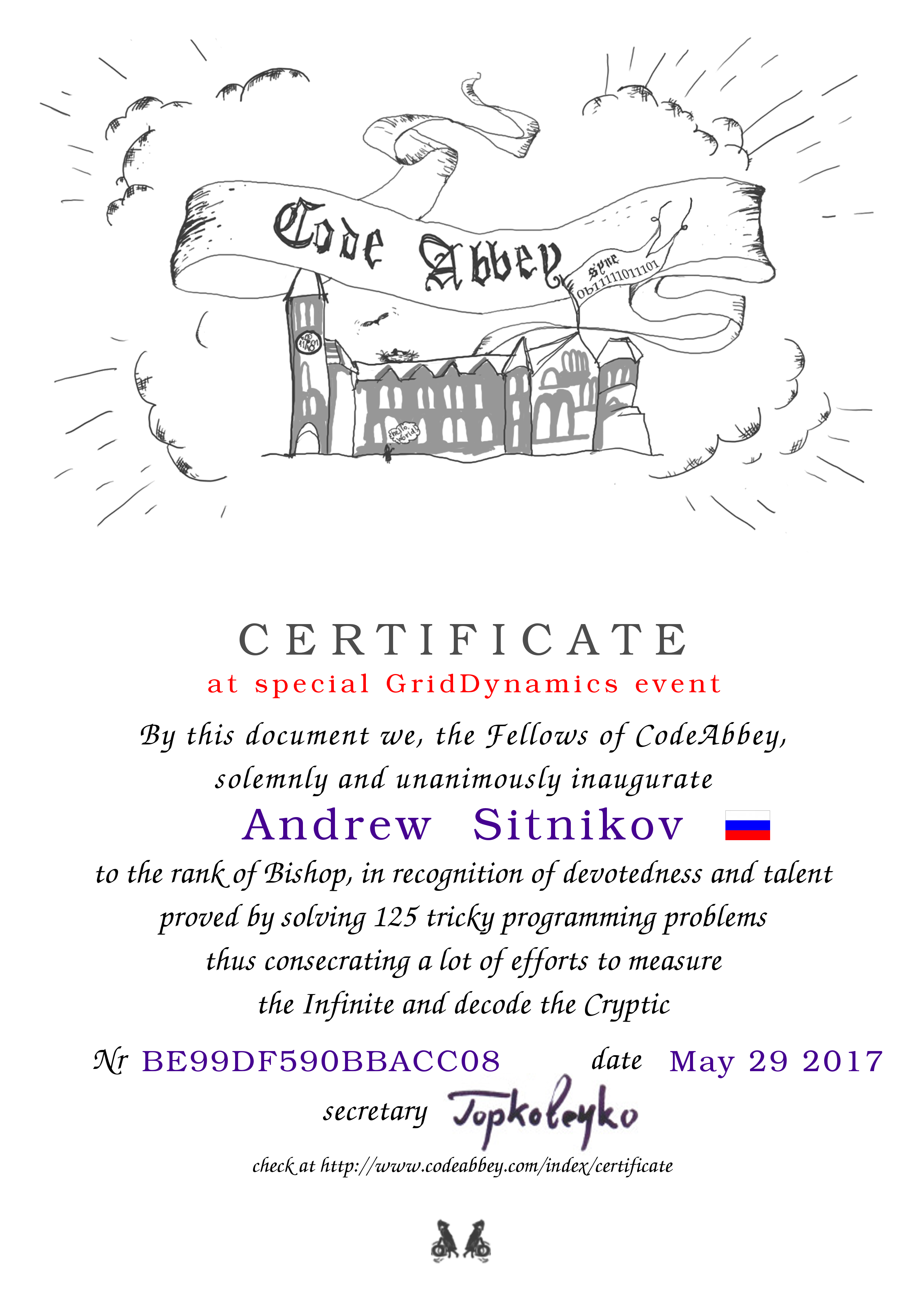 Diploma Type: Certificate of Bishop
