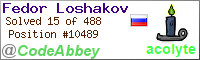 Tasks solved: 15 Country: Russian Federation